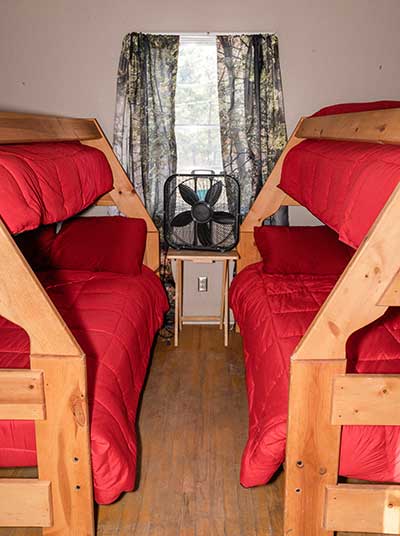 A little closer to the rustic end of things, but not quite camping. Plenty of beds, a refrigerator, and coffee maker.